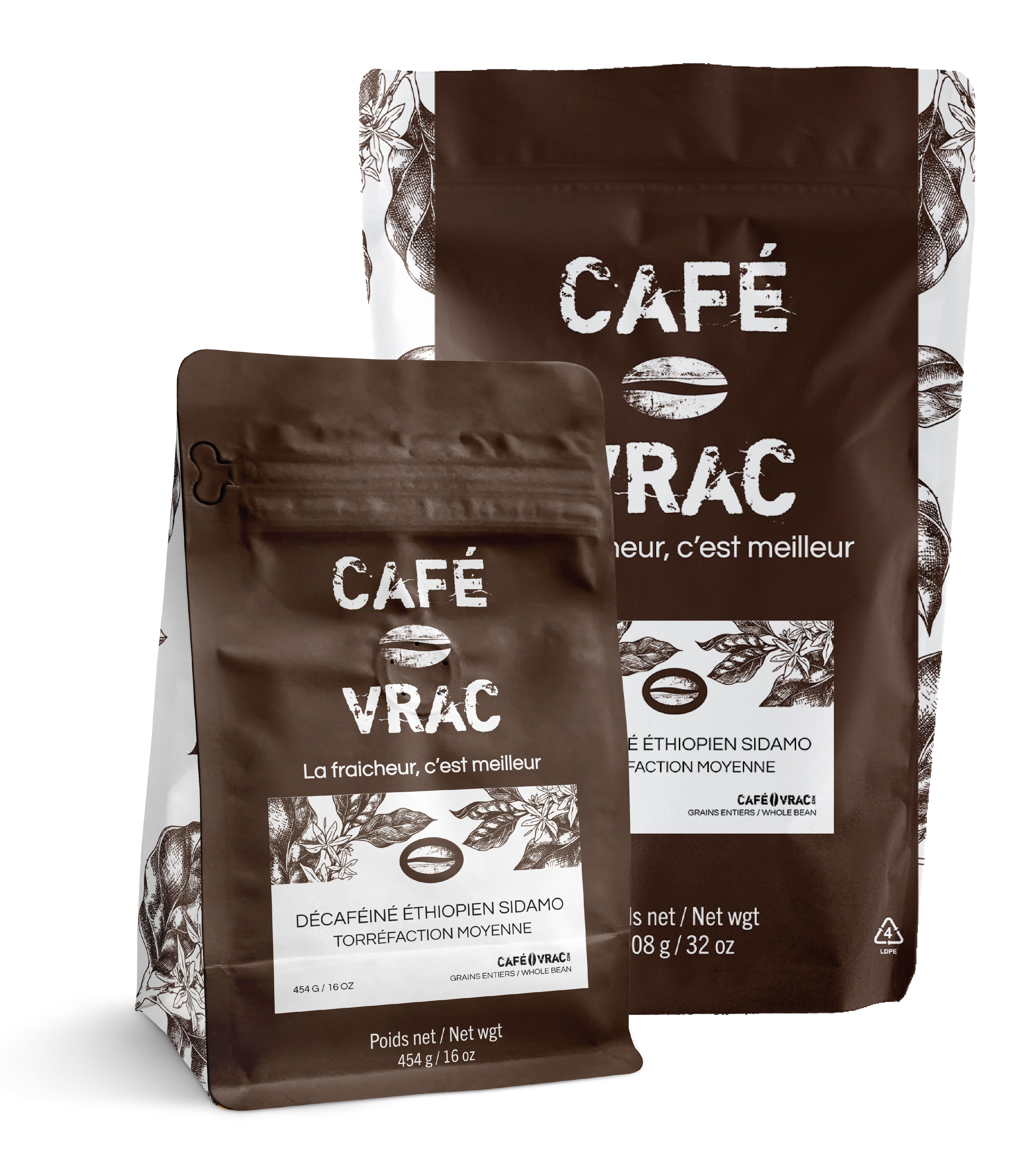 Décaféiné selon le procédé écologique Swiss Water®, il conserve toute l’intégrité de ses arômes, sans solvants chimiques et avec seulement 0,1 % de caféine.